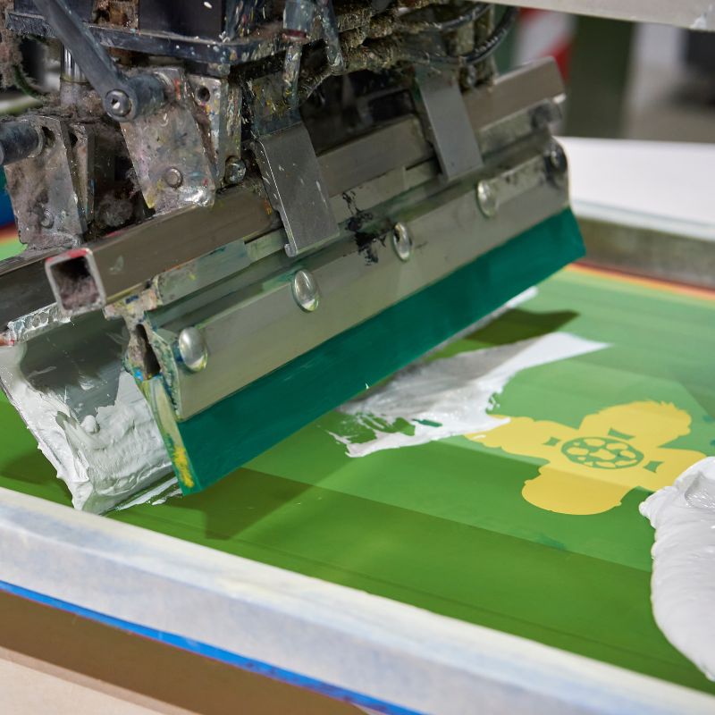 È una tecnica ideale per produzioni su larga scala. Consente di ottenere stampe dai colori vivaci e resistenti, perfette per loghi e grafiche semplici su t-shirt, felpe e altri tessuti. È particolarmente adatta per grandi tirature, offrendo un’ottima resa a lungo termine.